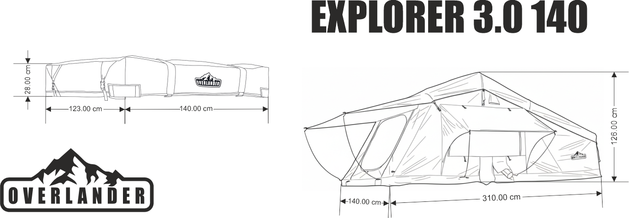 Overlander Explorer 3.0 de 140 cm cu sky roof este proiectat pentru a oferi un spațiu generos și confortabil în timpul aventurilor în aer liber. Dotat cu o extensie, acesta dispune de multiple specificații și caracteristici care îl fac ideal pentru călătoriile cu autovehiculul.