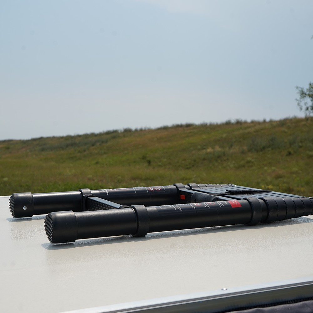 Scară neagră telescopică din aluminiu de 2,4 m pentru acces facil.