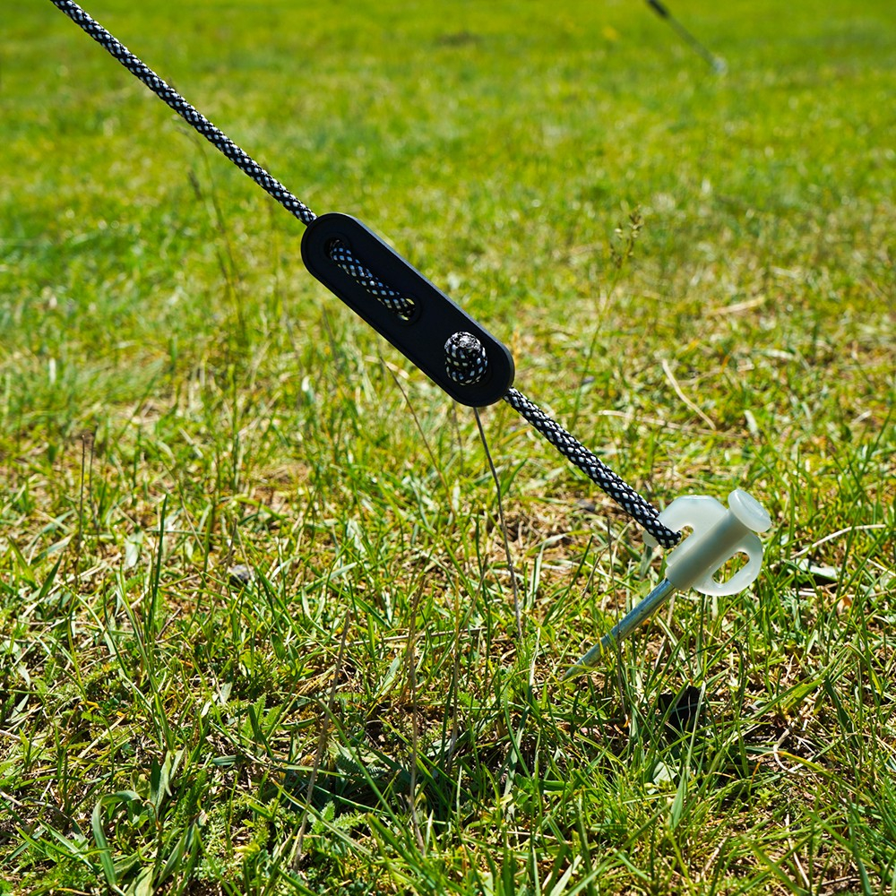 Vine cu suporturi în L, suporturi plate, șuruburi, piulițe, țeapă de ancorare + șnur din nailon, cheie Configurare ușoară și deschidere rapidă.